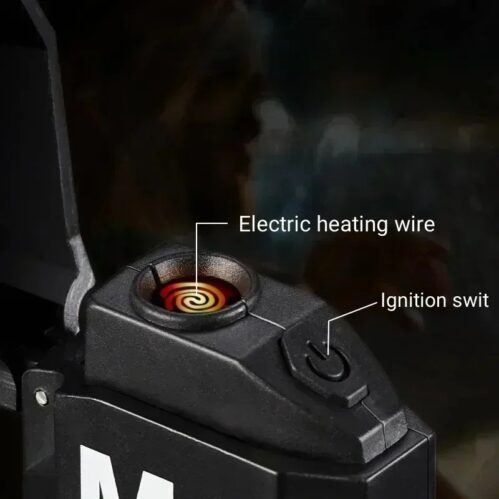 Product Name: Strong Light Electric Lighter Material: ABS+zinc alloy Battery: Polymer rechargeable battery Weight: 56g Size: 74 * 49 * 17mm Charging: Type-C Function: Flood light+electric heating lighter